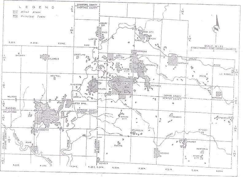 Figure 1. Principal portion of the Tri-State mining district, showing general mined areas.