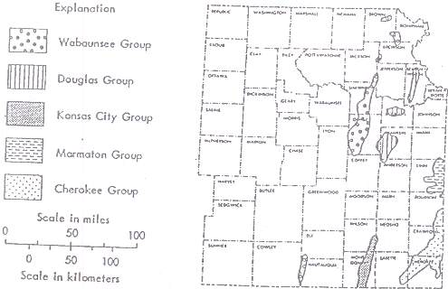 Within the Pennsylvanian rocks of Kansas, various limestone units were used for local building stone. Limestone units described by Risser (1960) as having more extensive use are the Kereford Limestone and Toronto Limestone members of the Oread Limestone, and the Westerville Limestone Member of the Cherryville Shale. In Bourbon County, the Bandera Quarry Sandstone Member of the Bandera Shale was extensively quarried and had widespread use in the region. A good summary of the Kansas building stones--their quarrying, processing, and use is summarized in Schoewe (1958, p. 443-457), Risser (1960) and Grisafe (1976).