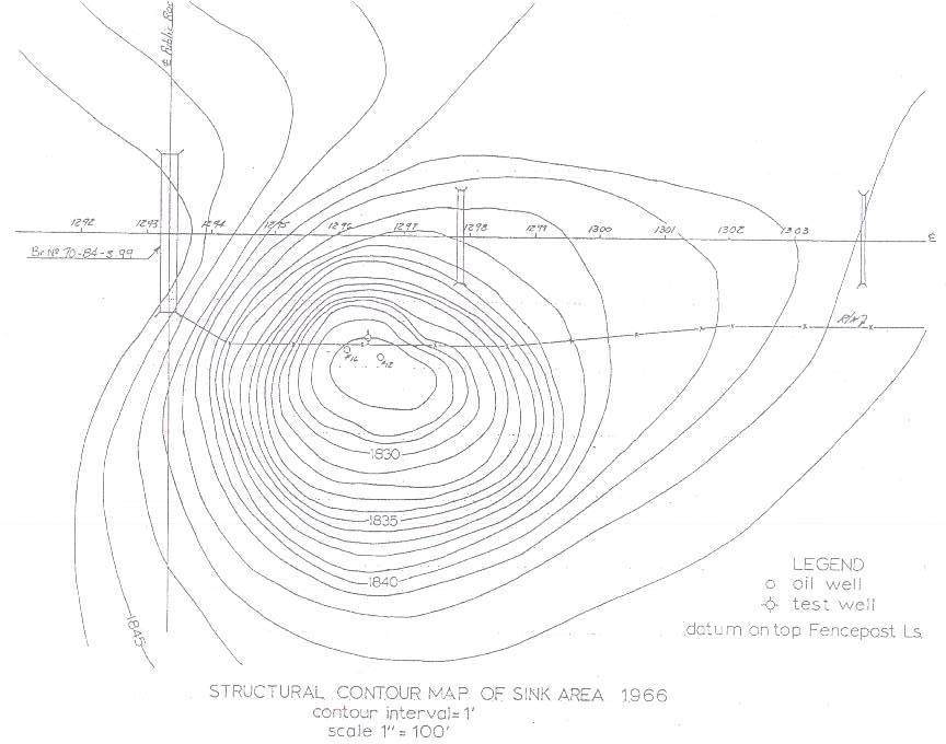 Figure 2: Structural contour map of Witt Sink from 1966. (Click on image for larger version)