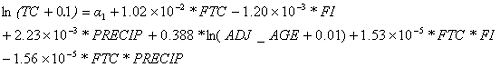 Where ADJ_AGE equals pavement age less the crack initiation age. If the pavement age is less than or equal to the crack initiation age, the predicted TC equals zero